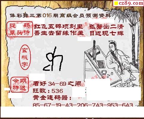 2026016期体彩P3图谜汇总